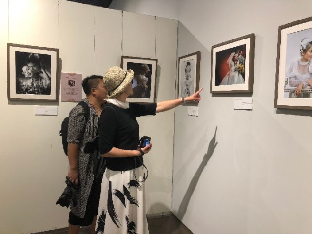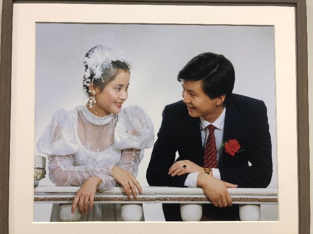 展廳內(nèi)的一幅新舊婚照對比圖引起了觀眾們的注意,作品中左邊的照片是一對新人于1980年拍攝的婚照,右邊是這對夫婦于今年以同樣角度、同款風格拍攝的一張婚照。對比之下,雖然曾經(jīng)的“新人”容顏漸老,但幸福依舊。