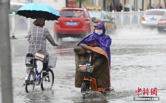 資料圖:民眾在下雨天出行。中新社記者 劉文華 攝