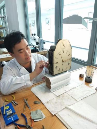 “能接觸到這些精心制作的文物、能上手修復(fù)它們,對我來說是很開心的。近距離看一個(gè)鐘表的零件、齒輪,都非常有質(zhì)感?!?/p>
