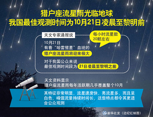 圖表:獵戶座流星雨光臨地球 我國最佳觀測時間為10月21日凌晨至黎明前 新華社發(fā) 邊紀(jì)紅 制圖
