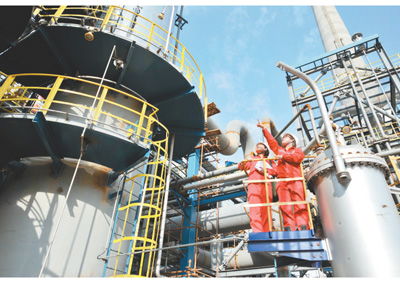 不斷追求綠色化,將排放濃度降至最低,企業(yè)這樣的環(huán)境行為理應(yīng)得到認可和鼓勵。圖為中國石化西南油氣分公司元壩凈化廠工作人員在檢查排放治理設(shè)備。