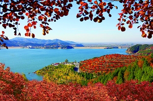 金海湖景區(qū)紅葉映襯湖水,葉美水秀景色迷人。平谷區(qū)供圖