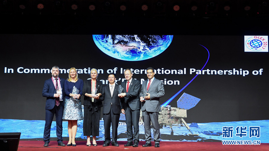 中國國家航天局嫦娥四號國際合作伙伴關(guān)系建立啟動(dòng)儀式在2017年全球航天探索大會(huì)上舉行。新華社記者陳曄華攝
