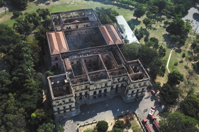 當?shù)貢r間2018年9月3日,巴西里約熱內(nèi)盧,發(fā)生大火后的巴西國家博物館。資料圖片/視覺中國