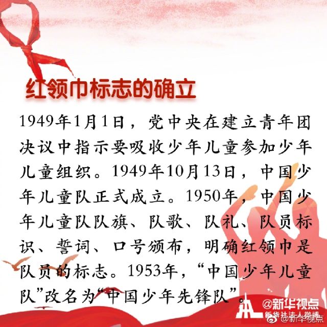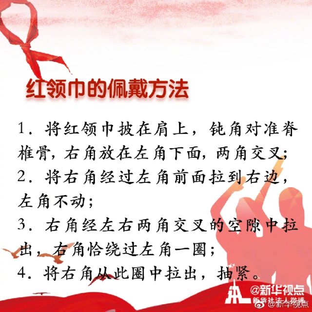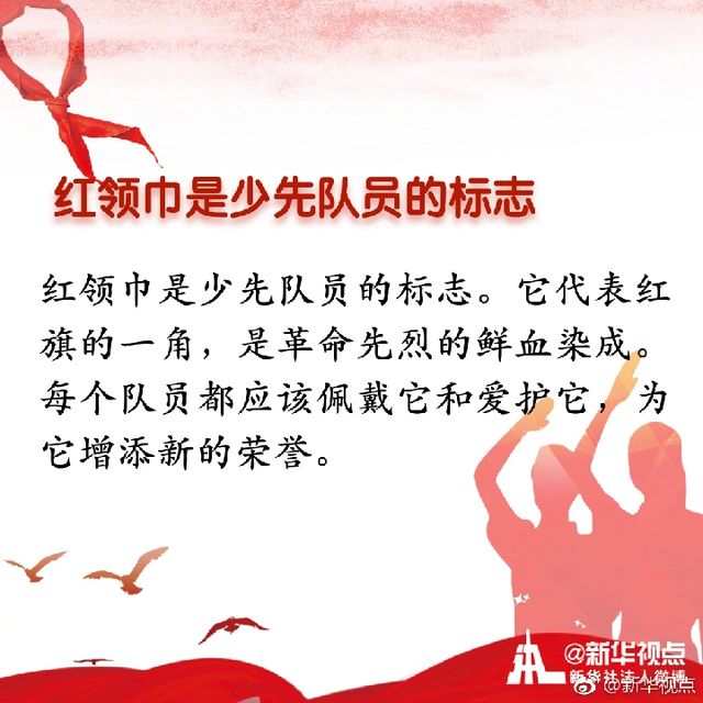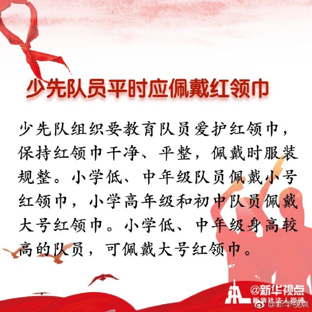 “我們是共產(chǎn)主義接班人,繼承革命先輩的光榮傳統(tǒng),愛祖國,愛人民,鮮艷的紅領(lǐng)巾飄揚在前胸?!奔t領(lǐng)巾是紅旗的一角,是少年先鋒隊的象征與標志。你是幾歲佩戴上的紅領(lǐng)巾?你對曾經(jīng)朝夕相伴的紅領(lǐng)巾了解多少?戳圖看詳解↓↓