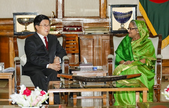 趙克志首先轉(zhuǎn)達(dá)了習(xí)近平主席和李克強(qiáng)總理對哈西娜總理的親切問候。趙克志指出,習(xí)近平主席兩年前對孟加拉國進(jìn)行了歷史性訪問,與哈西娜總理一致決定將中孟關(guān)系提升為戰(zhàn)略合作伙伴關(guān)系,開啟了中孟友好新篇章。中孟是世代友好的好鄰居和共同發(fā)展的好伙伴。中方愿同孟方一道,認(rèn)真落實兩國領(lǐng)導(dǎo)人重要共識,加強(qiáng)發(fā)展戰(zhàn)略對接,拓展各領(lǐng)域交流合作,共同推進(jìn)“一帶一路”建設(shè),深化在反恐、打擊網(wǎng)絡(luò)犯罪、打擊跨國犯罪和重大項目安保等方面的務(wù)實合作,不斷充實中孟戰(zhàn)略合作伙伴關(guān)系內(nèi)涵,更好地造福兩國和兩國人民。