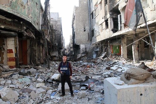 圖為陳聰在敘利亞戰(zhàn)場(chǎng)前線采訪。