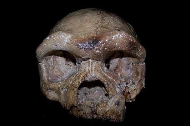 陜西出土的大荔人的顱骨。圖片中國科學(xué)院古脊椎動物與古人類所提供