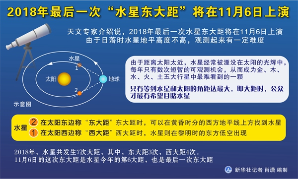 2018年最后一次“水星東大距”將在11月6日上演 新華社記者 肖瀟 編制