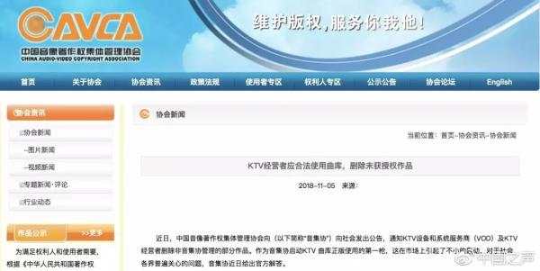 在公告中,音像著作權(quán)集體管理協(xié)會(huì)表示,為了降低已經(jīng)獲得該協(xié)會(huì)許可的各使用者的法律風(fēng)險(xiǎn),要求卡拉OK終端生產(chǎn)商、向音集協(xié)繳費(fèi)的卡拉OK經(jīng)營(yíng)者,在10月31號(hào)前,將公告附件中列出的音樂(lè)電視作品刪除。從11月1號(hào)起,如因?yàn)闆](méi)有刪除所列音樂(lè)電視作品、而遭權(quán)利人主張權(quán)利,使用者需要自行承擔(dān)法律后果。