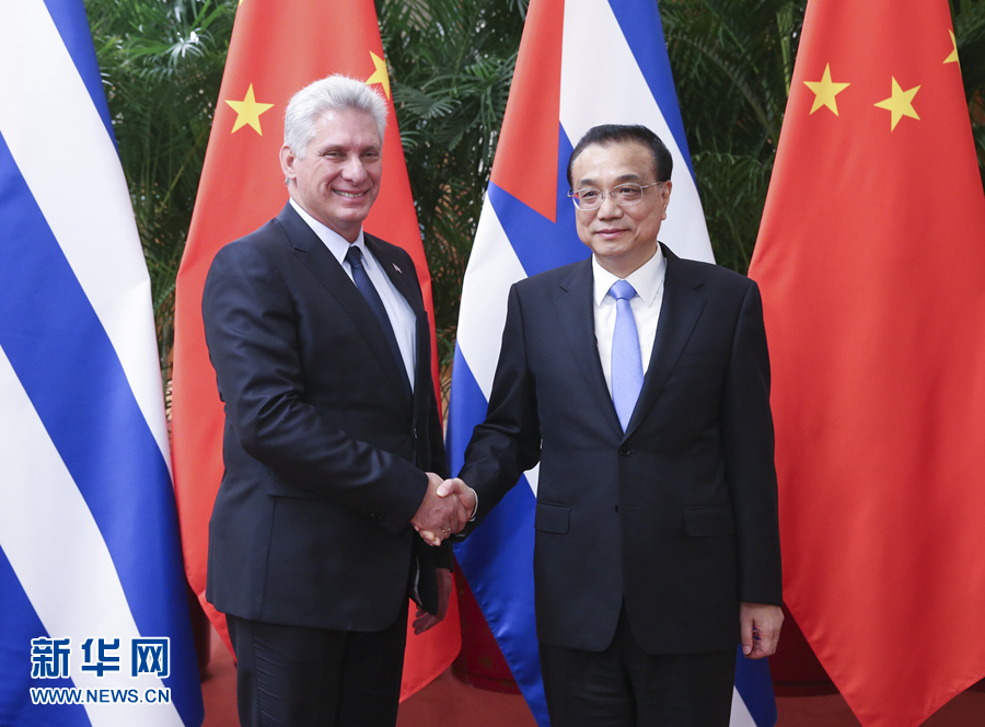 11月8日,國(guó)務(wù)院總理李克強(qiáng)在北京人民大會(huì)堂會(huì)見來(lái)華進(jìn)行國(guó)事訪問的古巴國(guó)務(wù)委員會(huì)主席兼部長(zhǎng)會(huì)議主席迪亞斯-卡內(nèi)爾。 新華社記者姚大偉攝