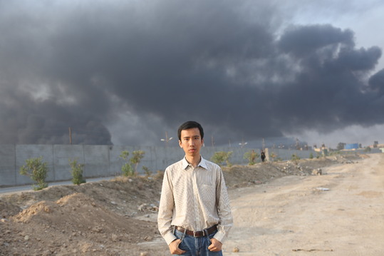 2016年11月10日劉萬(wàn)利在伊拉克摩蘇爾市南部地區(qū)采訪。