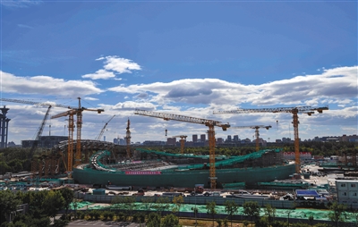 9月30日,北京冬奧會標志性建筑國家速滑館混凝土主體結構完成,“冰絲帶”已經拔地而起,在北京奧林匹克公園露出了偉岸的身軀。圖/視覺中國