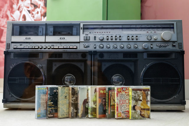 兩名參觀者在“時光博物館”里的年代照相館拍照留念。