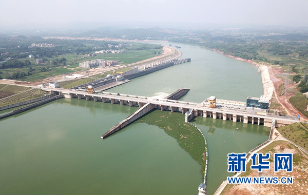 廣西南寧老口水利樞紐工程(5月18日無(wú)人機(jī)拍攝)。 新華社記者 周華 攝