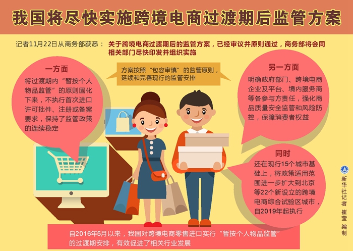 圖表:我國(guó)將盡快實(shí)施跨境電商過(guò)渡期后監(jiān)管方案 新華社記者 崔瑩 編制