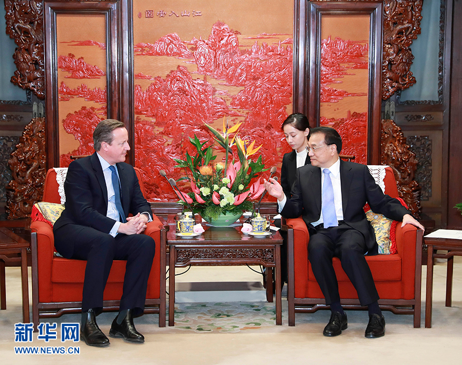 李克強(qiáng)贊賞卡梅倫在擔(dān)任英國首相期間為促進(jìn)中英關(guān)系與合作發(fā)展所作努力,表示中方高度重視發(fā)展同英國的關(guān)系,愿同英方秉持相互尊重、平等相待原則,鞏固政治互信,深化經(jīng)貿(mào)、金融等重點領(lǐng)域合作,進(jìn)一步挖掘投資合作潛力,使中英關(guān)系發(fā)展取得更多互利共贏、惠及雙方人民的成果。
