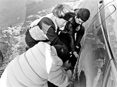 胡大鵬在執(zhí)勤中幫助遇到困難的司機(jī)
