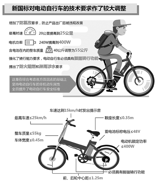 新國標(biāo)對電動自行車的技術(shù)要求作了較大調(diào)整(見圖):