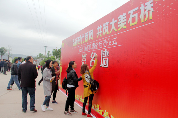 四川瀘縣石橋鎮(zhèn)舉辦移風(fēng)易俗活動(dòng),群眾在簽名墻上簽名承諾。(四川省瀘縣紀(jì)委監(jiān)委 吳威 供圖)