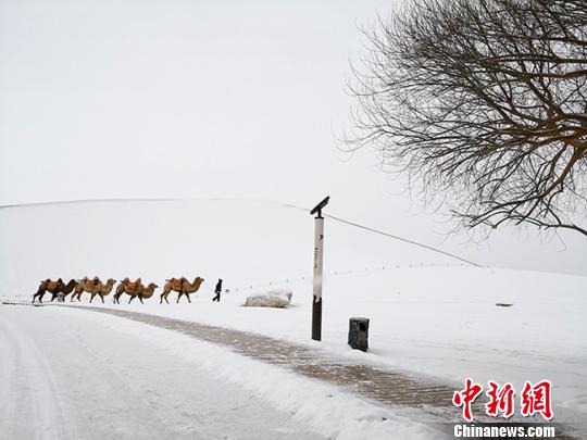 圖為金黃色的鳴沙山被白雪覆蓋如“雪山” 馮志軍 攝