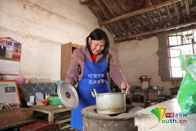 毛師花老人在家準備早餐。圖片由被采訪者提供