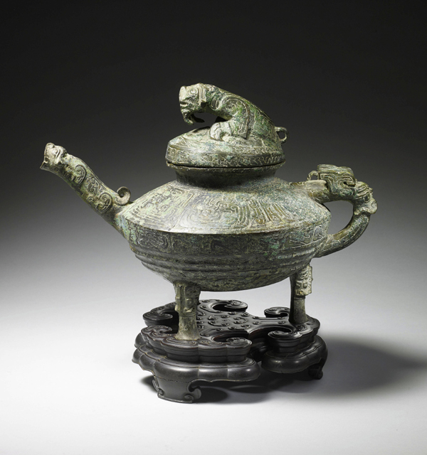 青銅“虎鎣”為西周晚期文物,頂蓋內(nèi)鑄有“自作供鎣”銘文,因其精美獨特的造型、罕見的虎形裝飾而具有重要的歷史、藝術(shù)和文化價值。根據(jù)相關(guān)資料顯示,青銅“虎鎣”原為清宮皇室舊藏,1860年被英國軍官哈利·埃文斯從圓明園劫掠獲得,此后一直由其家族收藏。