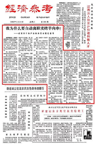 在《我為什么自動(dòng)離職賣烤羊肉串?》一文中,余林舟說,賣烤羊肉串14個(gè)月的營業(yè)額超過12000元,獲純利6000多元。十二大報(bào)告說要發(fā)展個(gè)體經(jīng)濟(jì),對它不準(zhǔn)打擊刁難,“我才下決心,當(dāng)個(gè)個(gè)體戶?!?/p>