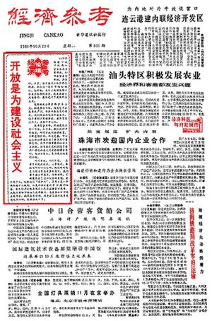 《經(jīng)濟(jì)參考報(bào)》在1984年10月23日刊發(fā)的這篇評論《開放是為建設(shè)社會(huì)主義》稱,這樣做也會(huì)帶來些資本主義,但這并不可怕,相反它可以發(fā)展生產(chǎn)力,作為社會(huì)主義的補(bǔ)充。如今,這樣的共識(shí)已深入人心,但在當(dāng)年,卻存在巨大的爭議。