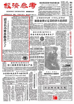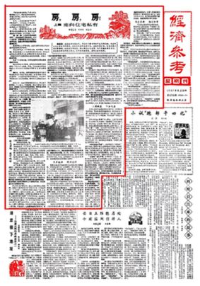 80年代初,改革的東風(fēng)讓經(jīng)濟(jì)建設(shè)的熱潮,一浪高過一浪,新華社想辦一份綜合性經(jīng)濟(jì)報(bào)紙,時(shí)任新華社國內(nèi)部副主任的李峰建議,報(bào)紙采用“經(jīng)濟(jì)參考”作為報(bào)名,第一可以有些“神秘”色彩,第二說話可以放開一些。新華社黨組采納了他的意見。