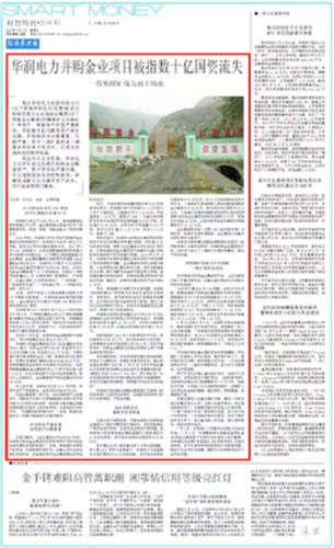 2013年7月5日刊登的《華潤電力并購企業(yè)項(xiàng)目被指數(shù)十億國資流失》一文,引起中紀(jì)委和國務(wù)院國資委等監(jiān)管部門重視,掀開了華潤集團(tuán)腐敗窩案!