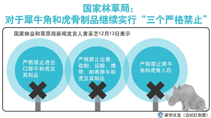 國家林草局:對于犀牛角和虎骨制品繼續(xù)實(shí)行“三個(gè)嚴(yán)格禁止” 新華社發(fā) 邊紀(jì)紅 制圖