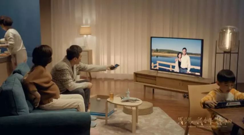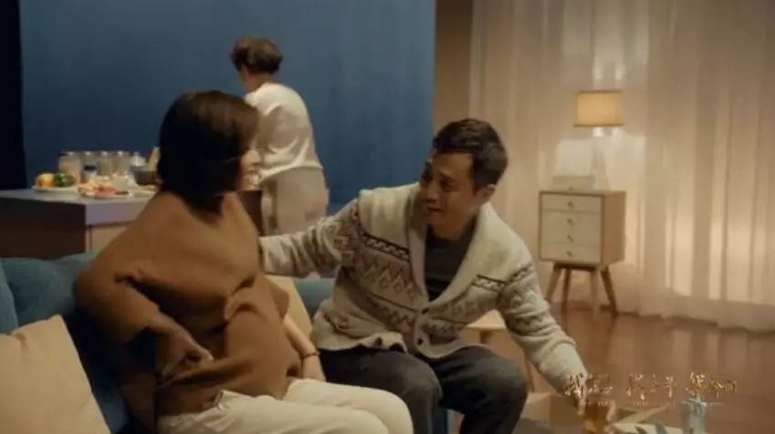 回到現(xiàn)代家庭的生活,人們的飲食、穿著、所用的生活電器都有明顯提升,這與之前八十年代的家庭形成了鮮明的對比。劉燁扶著懷孕的妻子一起坐在沙發(fā)上,妻子隆起的小腹代表著劉燁這個家庭對全面二孩政策的響應(yīng)。