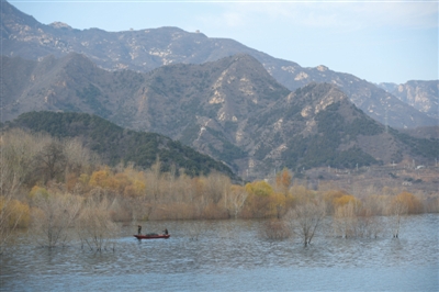 2017年11月19日,密云水庫蓄水量達20億立方米,岸邊原先的樹木都已被淹沒。在北京5個市級地表飲用水水源地中,密云水庫是唯一供水水源。資料圖片/新京報記者 侯少卿 攝