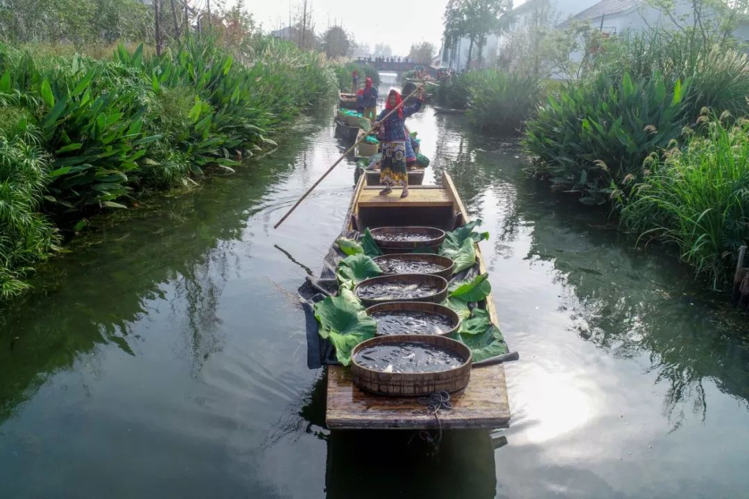 2018-09-23,江蘇泰州興化。在江蘇省興化市東羅村,農(nóng)民在“水上市集”展示特色農(nóng)產(chǎn)品。當(dāng)日是首屆中國農(nóng)民豐收節(jié),全國各地舉行豐富多彩的活動慶祝豐收。作者:湯德宏