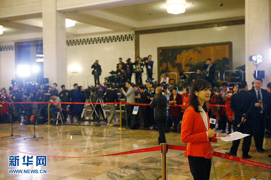 ??? 3月5日,第十三屆全國人民代表大會(huì)第一次會(huì)議在北京人民大會(huì)堂開幕。這是記者在“代表通道”采訪。 新華網(wǎng)/中國政府網(wǎng) 陳杰 攝