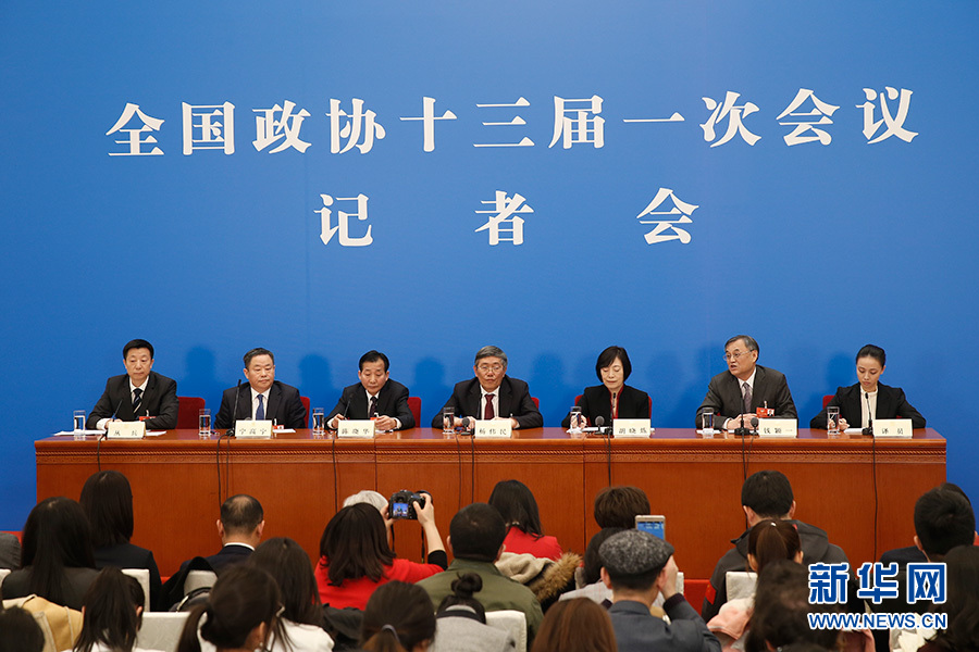 全國政協(xié)十三屆一次會議3月8日15:00在人民大會堂新聞發(fā)布廳舉行第二場記者會,邀請中央財經(jīng)領導小組辦公室副主任楊偉民,中國進出口銀行董事長、黨委書記胡曉煉,農(nóng)業(yè)部原副部長陳曉華,全國工商聯(lián)副主席、清華大學經(jīng)濟管理學院院長錢穎一,中國中化集團有限公司黨組書記、董事長寧高寧就推動經(jīng)濟高質(zhì)量發(fā)展回答記者提問。圖為記者會現(xiàn)場。新華網(wǎng)/中國政府網(wǎng) 翟子赫 攝?