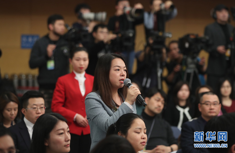 ??? 十三屆全國(guó)人大一次會(huì)議新聞中心3月10日15時(shí)在梅地亞中心多功能廳舉行記者會(huì),邀請(qǐng)國(guó)務(wù)院國(guó)資委主任肖亞慶,副秘書長(zhǎng)、新聞發(fā)言人彭華崗就“國(guó)有企業(yè)改革發(fā)展”相關(guān)問題回答中外記者提問。圖為財(cái)新周刊記者提問。新華網(wǎng)/中國(guó)政府網(wǎng)?曲植 攝?
