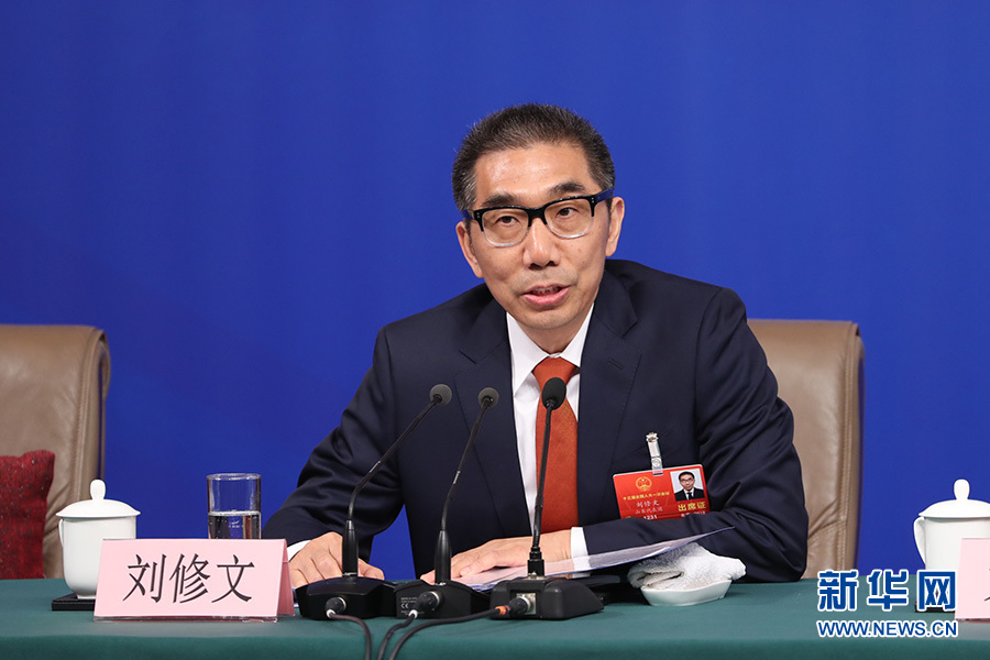 十三屆全國人大一次會議新聞中心于3月12日15時在梅地亞中心多功能廳舉行記者會,邀請十二屆全國人大財經(jīng)委副主任委員尹中卿、教科文衛(wèi)委副主任委員吳恒、環(huán)資委副主任委員袁駟、內司委委員鄭功成,全國人大常委會預算工委副主任劉修文、常委會辦公廳秘書局巡視員傅文杰就“人大監(jiān)督工作”相關問題回答中外記者提問。圖為全國人大常委會預算工委副主任劉修文回答記者提問。新華網(wǎng)/中國政府網(wǎng) 陳杰 攝
