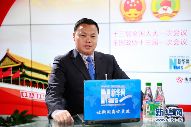 圖為河南省平頂山市寶豐縣大黃村黨支部書記馬豹子做客新華網(wǎng)2018全國(guó)兩會(huì)特別訪談