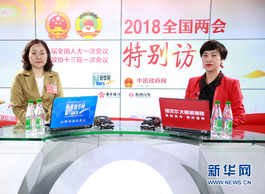 圖為全國(guó)人大代表、新野鼎泰高科精工科技有限公司總經(jīng)理王馨做客新華網(wǎng)2018全國(guó)兩會(huì)特別訪談