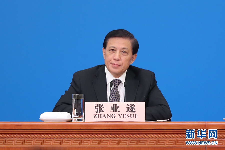 3月20日上午,十三屆全國(guó)人大一次會(huì)議閉幕后,國(guó)務(wù)院總理李克強(qiáng)在人民大會(huì)堂三樓金色大廳會(huì)見(jiàn)采訪(fǎng)十三屆全國(guó)人大一次會(huì)議的中外記者并回答記者提出的問(wèn)題。圖為大會(huì)發(fā)言人張業(yè)遂。新華網(wǎng)/中國(guó)政府網(wǎng) 翟子赫 攝