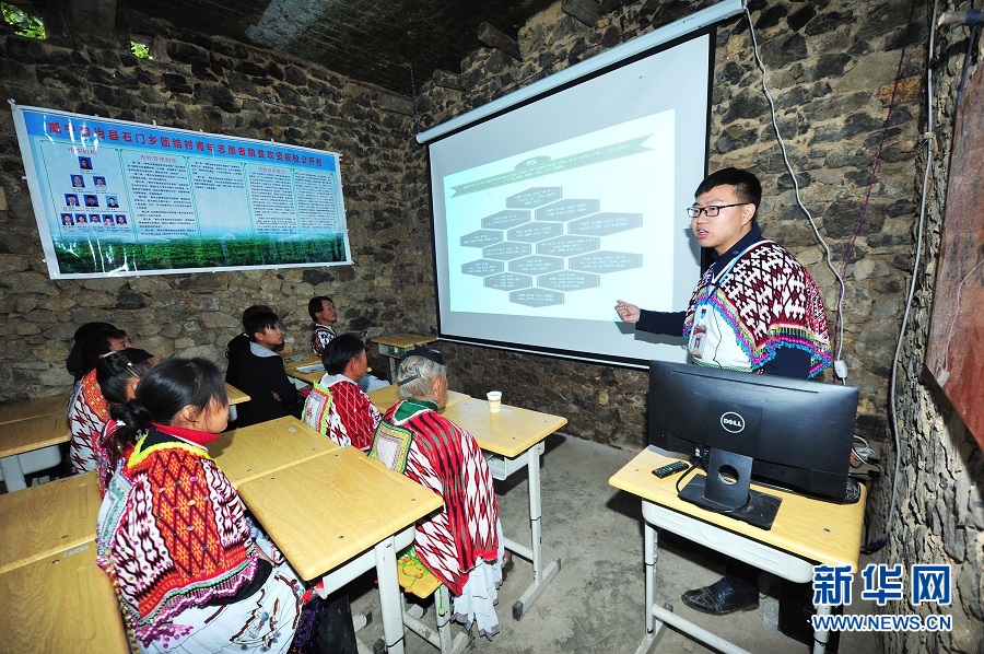 在貴州省畢節(jié)市威寧彝族回族苗族自治縣石門鄉(xiāng)團(tuán)結(jié)村七里沖組脫貧攻堅講習(xí)點,村支書胡鈞溥在向當(dāng)?shù)厝罕娭v解十九大精神及相關(guān)的扶貧政策(2017年10月23日攝)。逐夢征程,需要價值追求的引領(lǐng)和精神力量的支撐。 “社會主義核心價值觀決定著各民族共有精神家園的發(fā)展方向,必須在各民族中大力培育和踐行”“以社會主義核心價值觀為引領(lǐng),深入挖掘優(yōu)秀傳統(tǒng)農(nóng)耕文化蘊含的思想觀念、人文精神、道德規(guī)范”“引導(dǎo)全社會積極培育和踐行社會主義核心價值觀,樹立良好道德風(fēng)尚”……今年全國兩會期間,習(xí)近平總書記多次強調(diào)培育和踐行社會主義核心價值觀。兩會上,社會主義核心價值觀被寫入國家根本大法。浩渺行無極,揚帆但信風(fēng)。兩會結(jié)束后,代表委員們奔赴大江南北,與各地干部群眾一起,以實際行動推動社會主義核心價值觀建設(shè)落細(xì)落小落實,持續(xù)構(gòu)筑中國精神、中國價值、中國力量,為劈波斬浪的“中國號”巨輪揚起團(tuán)結(jié)奮進(jìn)的精神風(fēng)帆。新華社記者 陶亮 攝