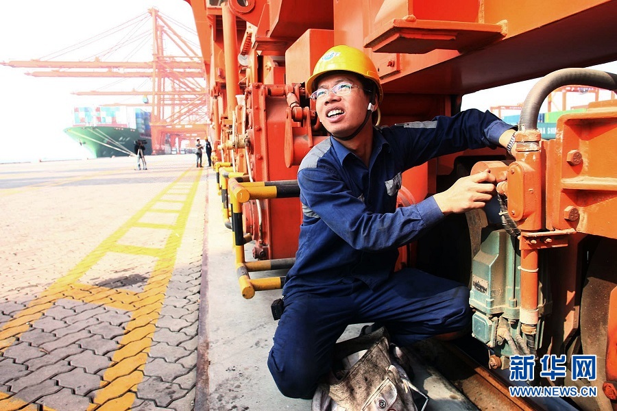 馮鴻昌在檢修港口設(shè)備(2007年12月7日攝)。從業(yè)21年,馮鴻昌從一名普通學(xué)徒起步,一步步成長為廈門集裝箱碼頭集團(tuán)有限公司高級技師、全國勞動模范,榮獲中華技能大獎。他的微信頭像里,“匠人匠心”四個字分外顯眼。逐夢征程,需要價值追求的引領(lǐng)和精神力量的支撐。新華社記者 姜克紅 攝