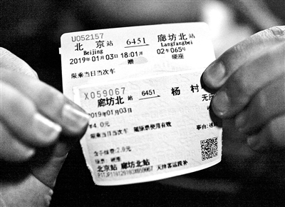 秘京春告訴北京青年報(bào)記者,6451次最初是給鐵路職工上下班的通勤車,使用最簡易的車廂,鐵路職工免費(fèi)乘坐,同時(shí)面向社會開放,由于票價(jià)低廉,非常貼近普通百姓。但隨著時(shí)代發(fā)展,很多老綠皮車線路停運(yùn)。為留作紀(jì)念,秘京春購買了6451/6452次最后一趟的全程車票,單程票價(jià)6.5元。但他并不打算坐滿全程,而是到廊坊北下車,再轉(zhuǎn)乘別的列車返京,用他的話說是“買長坐短”。