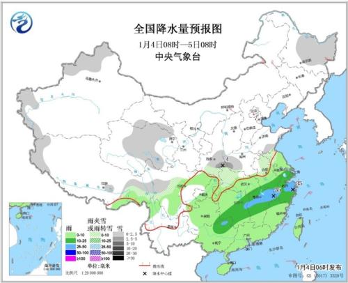 受高空槽影響,4日至5日,陜西南部、河南南部、山東南部、蘇皖北部、湖北西部等地有小雪或雨夾雪,局地有中到大雪;南方大部地區(qū)有小到中雨,江西中北部、浙江中部等地的部分地區(qū)有大雨。