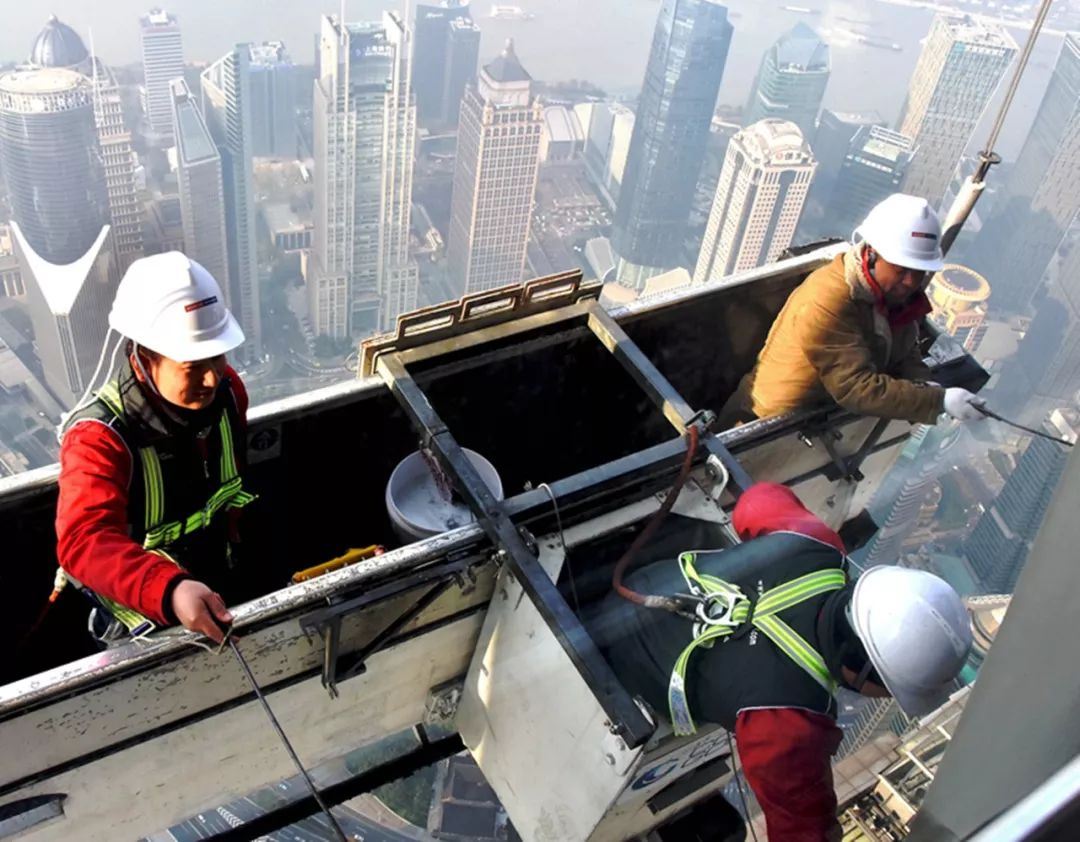 2018-12-13,上海。上海環(huán)球金融中心大廈外墻450米高空作業(yè)的清潔工,被陸家嘴金融中心眾多高大樓宇包圍,成了“中心”之中的中心。作者:孫家錄