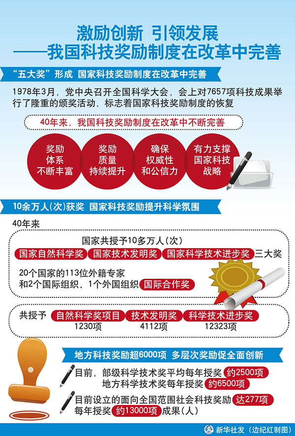 圖表:激勵創(chuàng)新 引領(lǐng)發(fā)展——我國科技獎勵制度在改革中完善 新華社發(fā) 邊紀(jì)紅 制圖