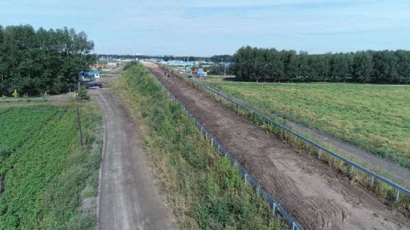 平改立工程免渡河鎮(zhèn)中項目,可以看到橋梁和居民樓之間的距離非常短。(8月27日 航拍圖)達(dá)日罕攝