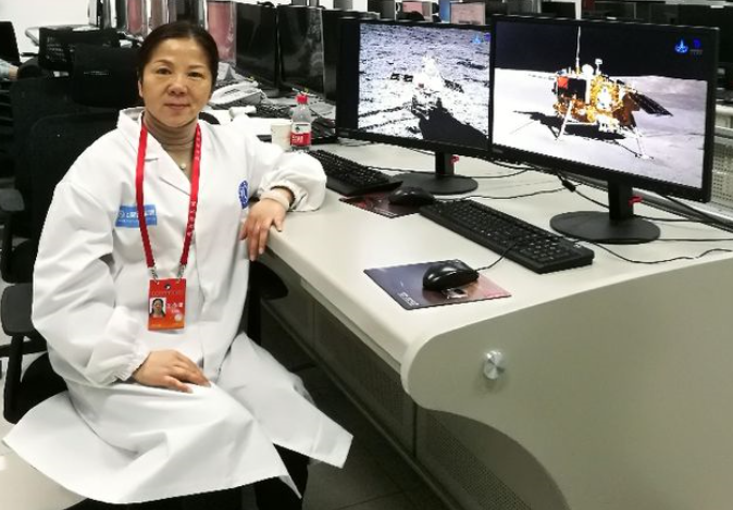 張玉花在嫦娥四號(hào)著陸器與月球車(chē)玉兔二號(hào)互拍后留影。航天科技集團(tuán)八院供圖